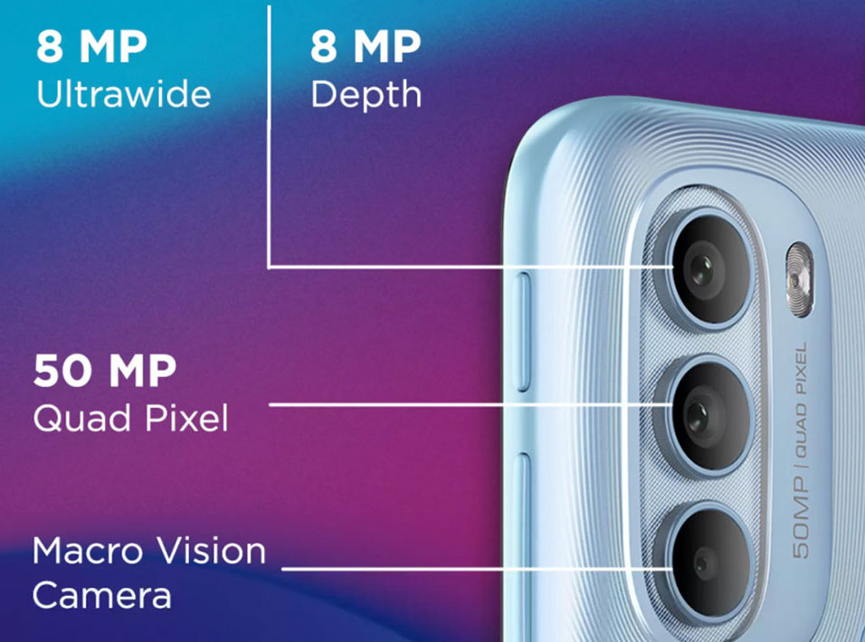 Il Moto g31, che punta molto sull’imaging, ha tre obiettivi sul retro, e uno nella parte anteriore per selfie e videochiamate. La fotocamera principale ha un sensore da 50 MP, c’è poi una fotocamera con obiettivo ultra grandangolare (118°) e sensore da 8 MP (che funziona anche come sensore di profondità quando si scattano foto in modalità Ritratto) e una fotocamera macro da 2 MP. La fotocamera frontale è da 13 MP.