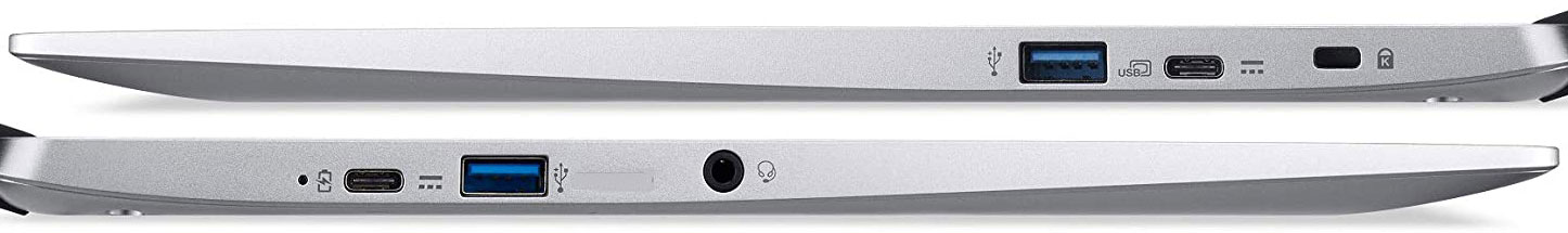 Da chiuso, sulla faccia superiore, spiccano il logo ACER, cromato, e quello Chrome. Su quella inferiore sono presenti 4 piedini in gomma, per migliorare la stabilità sulla superficie di appoggio, e le feritoie degli speaker stereo, che offrono una riproduzione audio soddisfacente ma con pochi bassi.