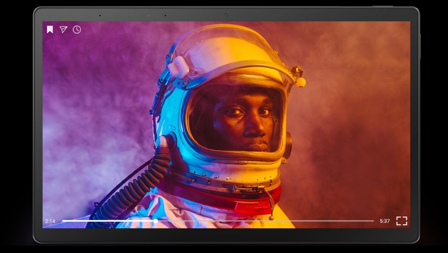 Se si vogliono scattare foto o catturare sequenze video, sul tablet sono presenti due cam. La prima, nella parte posteriore, può scattare istantanee da 12 megapixel o acquisire video Full HD a 30 fps, quella posteriore ha una definizione di 5 megapixel e può essere utilizzata per videochiamate nitide. Per quest’ultime, esiste un microfono integrato con la tecnologia audio AI Noise-Canceling che permette di rendere le voci nelle riunioni il più chiare possibili, anche quando sono presenti molte persone nello stesso ambiente.