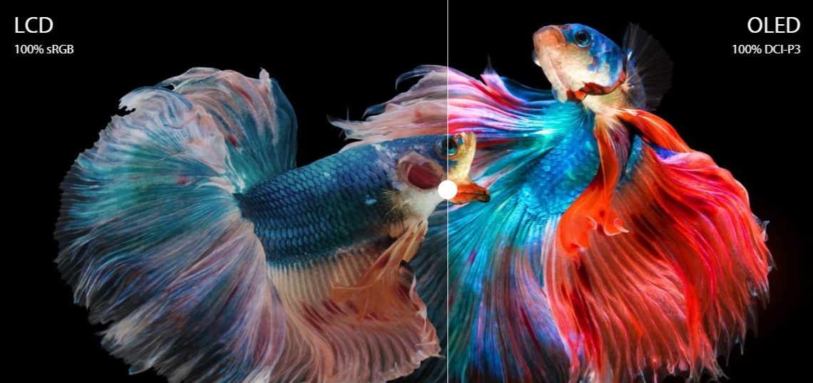 Certificato HDR Dolby Vision, ha una resa visiva elevatissima con neri perfetti. La luminosità massima è di 550 nits, la fedeltà dei colori è eccellente, essendo PANTONE Validated, con una gamma cinematografica DCI-P3 al 100%. Ha un tempo di risposta veloce – 0,2 millisecondi – ed offre anche una protezione per gli occhi migliore rispetto agli schermi non OLED: i livelli di luce blu sono più bassi – fino al 70% in meno rispetto a un display LCD – e certificati TÜV Rheinland. Nell’applicazione MyAsus è possibile scegliere tra due profili di visualizzazione disponibili (Normale o Vivido) oppure si può con la modalità Manuale regolare ed ottimizzare la resa visiva così che corrisponda alle proprie preferenze.