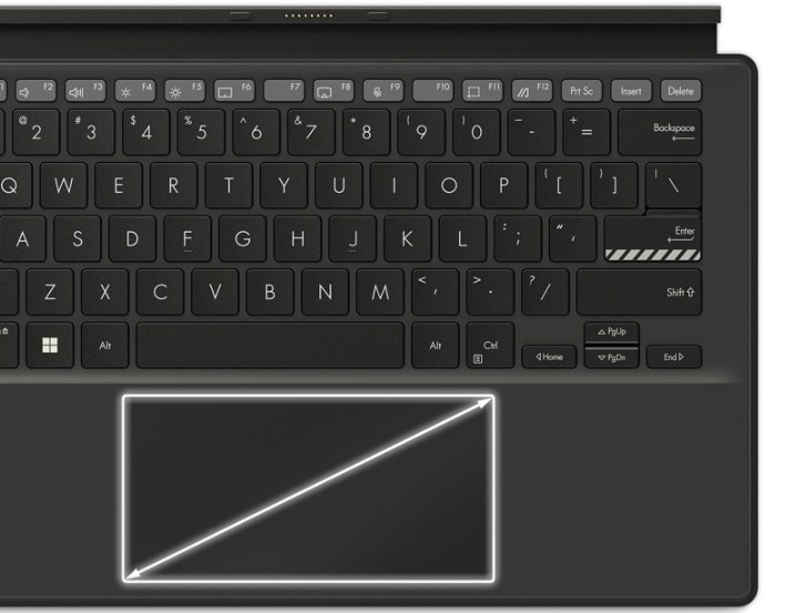 Il Vivobook 13 Slate viene fornito con tre accessori. La prima è la tastiera staccabile, che si aggancia facilmente tramite un connettore magnetico. Offre una buona qualità di digitazione, grazie a tasti dalla corsa di 1,4 mm e passo di 19,05 mm, che però non sono retroilluminati.