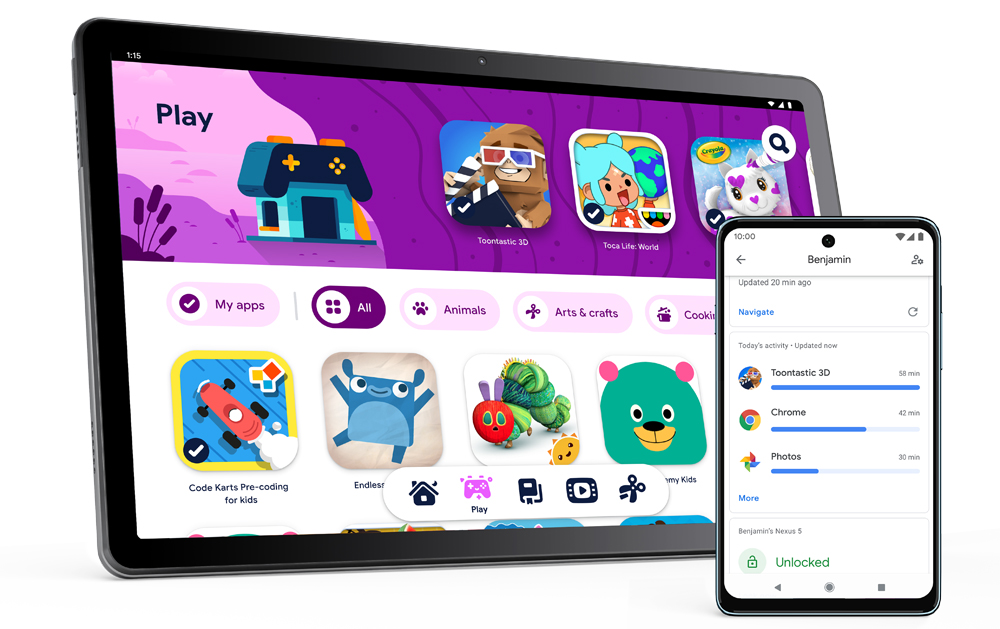 Tra le app preinstallate c’è Google Kids Space, che aiuta i bambini a scoprire, creare e crescere mediante una raccolta di contenuti e idee di qualità. A proposito dei più piccoli, da segnalare che, utilizzando l’app Family Link, è possibile gestire i contenuti disponibili, impostare limiti per il tempo trascorso davanti allo schermo e altro ancora.