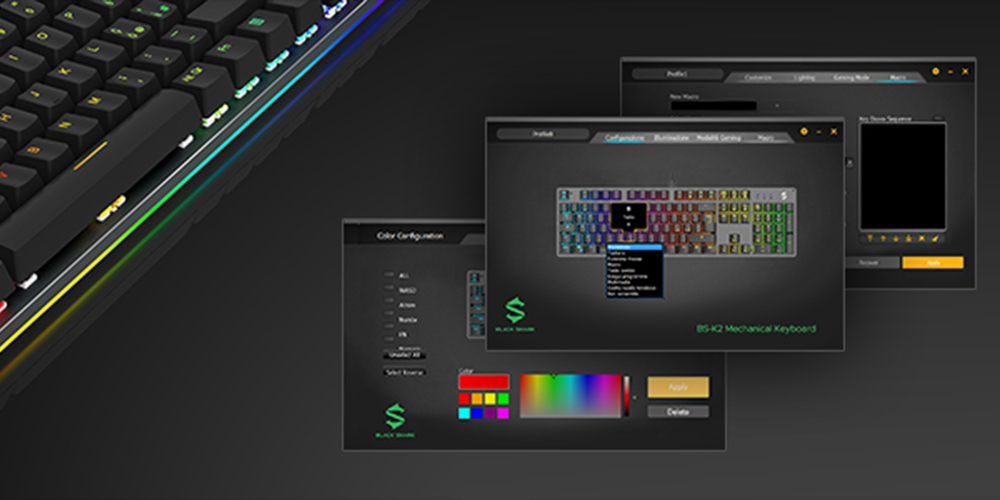 Disponibile un software dedicato (http://global.blackshark com/pages/download), che, oltre a regolare l’illuminotecnica, consente di riassegnare i tasti e creare macro.