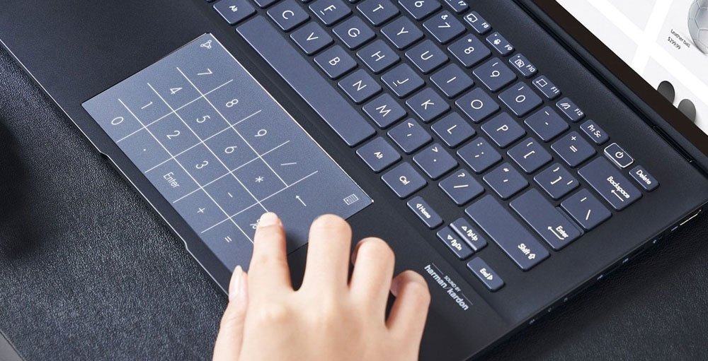 Ampio il touchpad dotato di un rivestimento idrofobico che offre la piacevole sensazione di toccare una seta. Può trasformarsi con un semplice tocco in un comodo tastierino numerico (NumberPad 2.0).