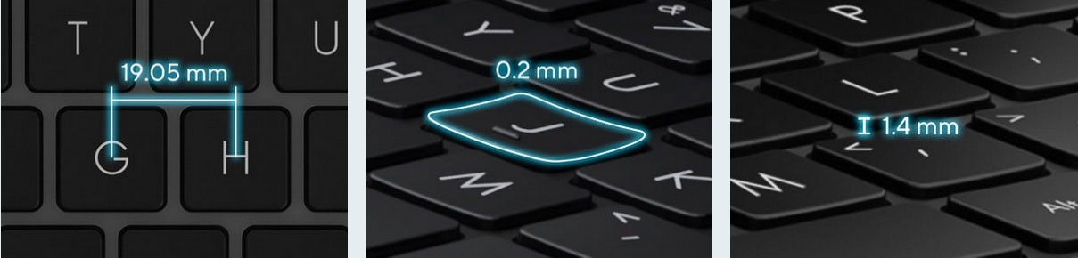 La tastiera, con tre livelli di retroilluminazione, ha tasti con corsa di 1,4 mm, su cui non è necessario premere troppo per ottenere una risposta. Siamo lontani dalle prestazioni di una tastiera meccanica, ma è più che buona per la digitazione di tutti i giorni.