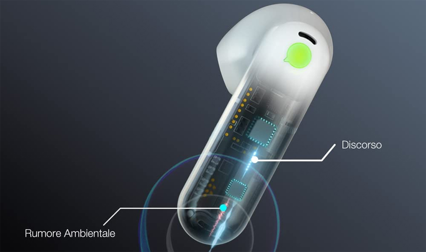 All’interno, ognuno di essi contiene una coppia di microfoni Beamforming con riconoscimento vocale direzionale. Per rendere le traduzioni più accurate, utilizzano la cancellazione adattiva del rumore di fondo, che, grazie ad un algoritmo proprietario di intelligenza artificiale (Timekettle HybridComm), consente di riconoscere, in maniera via via più precisa, la voce di chi li indossa indipendentemente dall’ambiente in cui si trova.
