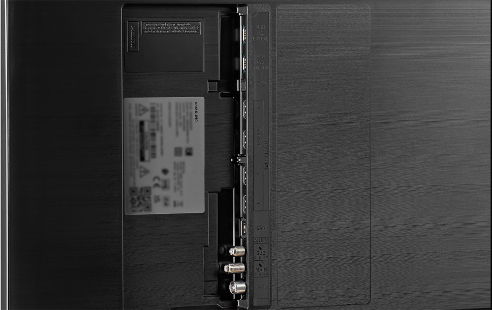 Sul retro sono presenti quattro ingressi HDMI con HDMI 2.1 e HDCP 2.2, due porte USB 2.0, un’uscita audio digitale ottica, un ingresso RF (antenna), una porta RS-232 (minijack, solo per assistenza) e una porta Ethernet (LAN). Tutti e quattro gli ingressi HDMI sono compatibili con i segnali 4K/120Hz.