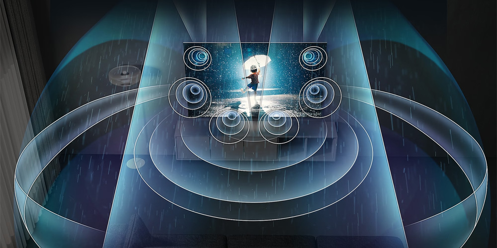 Per quanto riguarda la sezione audio, il QN90B è dotato di altoparlanti multidirezionali, che supportano la tecnologia Dolby Atmos per un’esperienza immersiva. Offre una buona chiarezza dei dialoghi e bassi decenti (per una TV). Tra le feature spicca il sistema di Object Tracking Sound+ (OTS+) che indirizza i suoni nell’ambiente in base al movimento degli oggetti sullo schermo. Per migliorare ulteriormente la qualità del suono è consigliabile abbinare una soundbar, meglio se supporta Q Symphony.