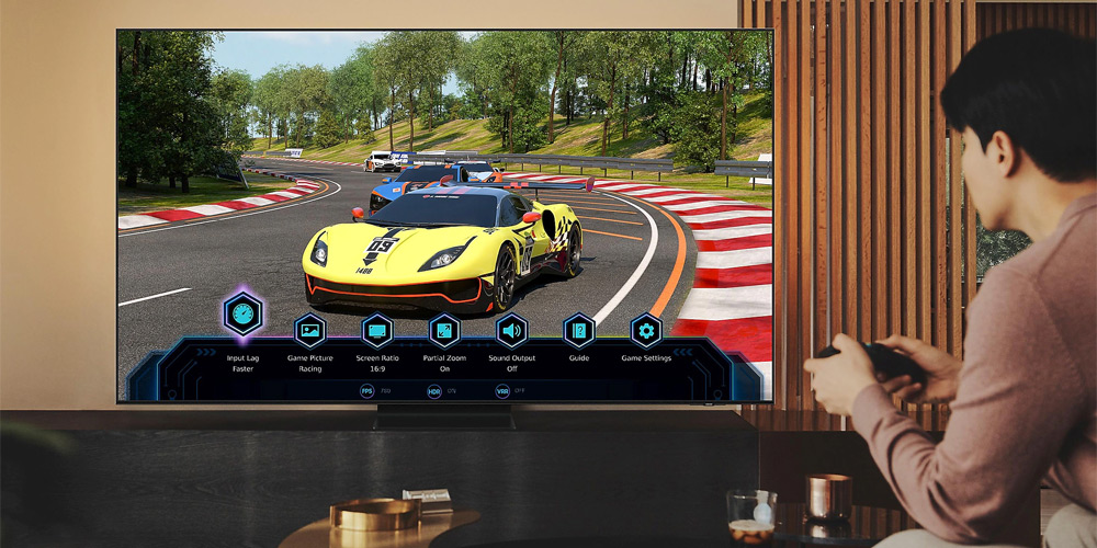 Il QN90B è un ottimo televisore per il gaming, grazie alle numerose funzioni ad hoc. Il Super UltraWide Game View espande l’immagine in uno dei rapporti dello schermo 21:9 e 32:9, ma solo quando è collegato un PC/laptop. Game Bar offre ai giocatori un rapido accesso alle impostazioni da modificare al volo, mentre HGiG HDR migliora la mappatura dei toni/la qualità delle immagini con i giochi supportati, così come HDR10+ Gaming.