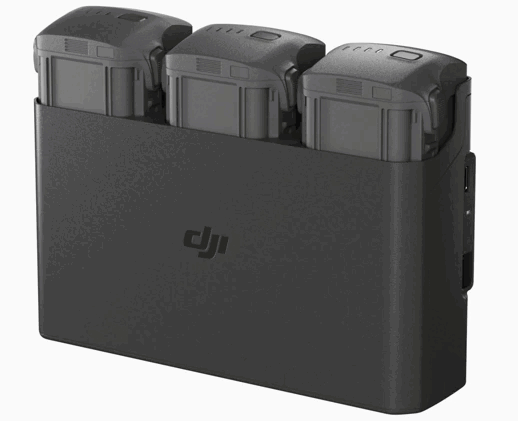 Nella confezione di vendita non è presente alcun alimentatore ma DJI offre diverse accessori per la ricarica, tra cui un caricabatteria da auto e una stazione di ricarica a tre posti che supporta l’accumulo di energia, e consente di trasferire la carica rimanente da due batterie alla terza batteria con la massima carica residua.