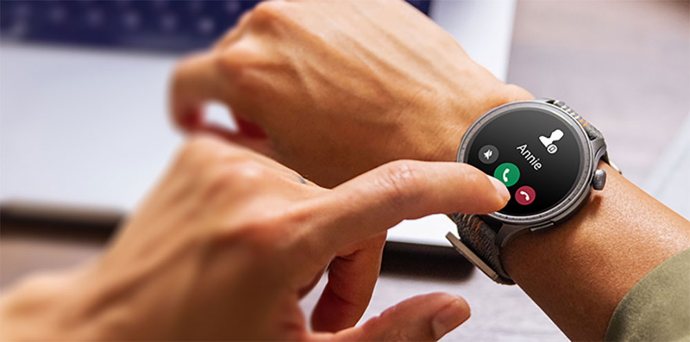 Nonostante le generose dimensioni con un diametro di 46 mm, lo smartwatch rimane comodo sul polso grazie al suo spessore di soli 10,6 mm e al peso di appena 35 grammi (senza cinturino).