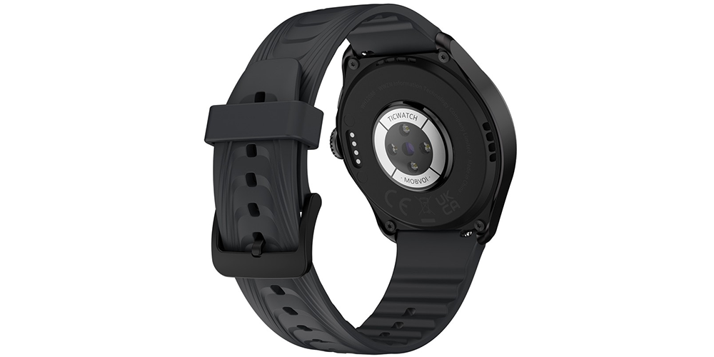 Sul fondello, in nylon e fibra di vetro, sono presenti i sensori (frequenza cardiaca HD PPG, SpO2, temperatura cutanea, Low Latency Off-Body) e quattro contatti dorati per la ricarica. La presenza anche di uno speaker consente di effettuare telefonate e interagire con l’assistente vocale direttamente dall’orologio, grazie anche al microfono integrato.
