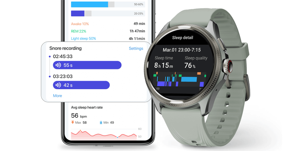 L’app Mobvoi Health, disponibile solo su Google Play Store, gestisce tutti questi dati e offre una panoramica dettagliata delle attività e della salute dell’utente, con la possibilità di sincronizzare i dati con app di terze parti come Strava, Adidas Running e Nike Run Club.