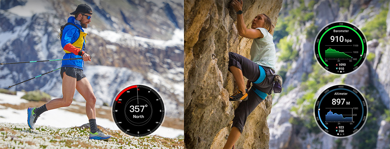 La presenza di bussola, barometro, altimetro e Multi-GNSS (GPS, GLONASS, Galileo, QZSS, Beidou) garantisce una navigazione precisa anche in condizioni atmosferiche avverse e in aree con scarsa copertura satellitare.