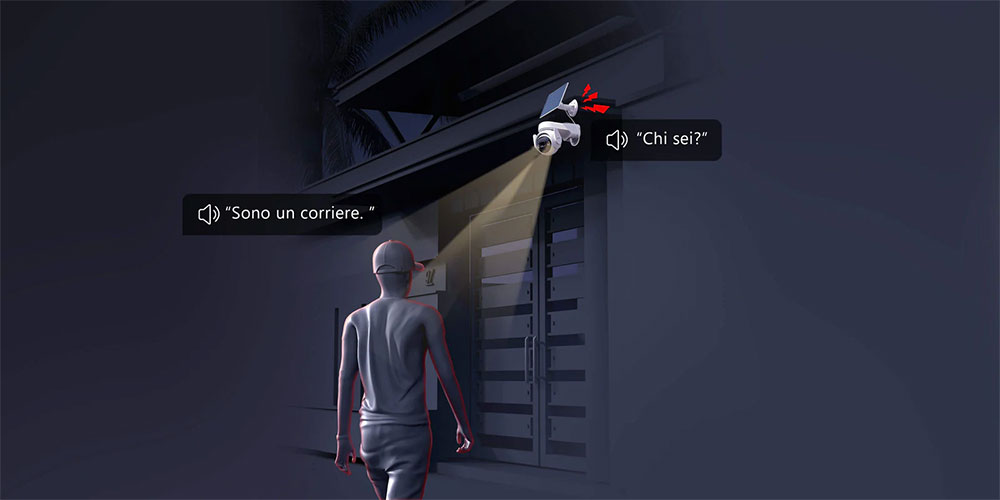 Grazie al microfono e all’altoparlante integrati, è supportata la comunicazione bidirezionale, che permette di dialogare con chiunque si trovi di fronte alla telecamera. In questo caso, è anche possibile modificare la propria voce per renderla più profonda e così scoraggiare i malintenzionati.
