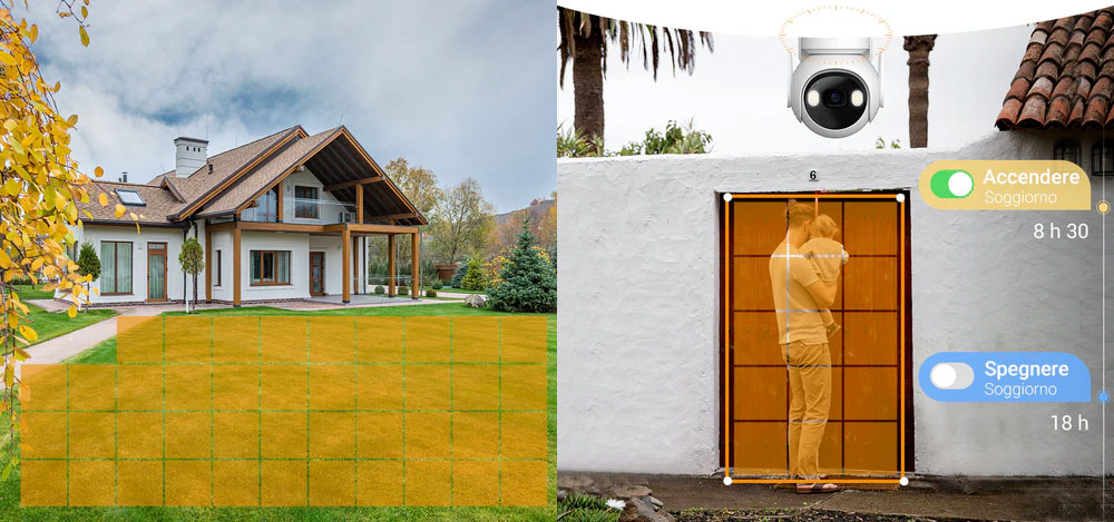 Inoltre, è possibile impostare zone di rilevazione personalizzate e impostare fasce orarie e giorni della settimana in cui attivare il rilevamento.