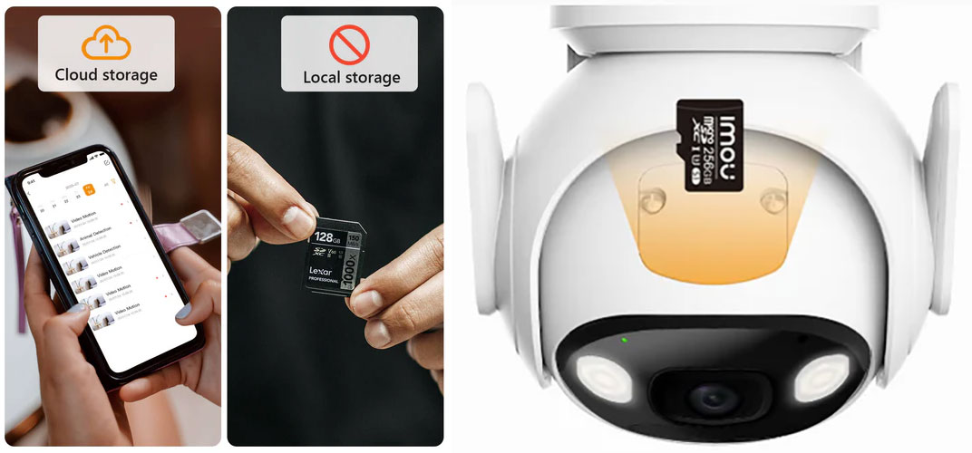 Per quanto riguarda l’archiviazione dei video, la Cell PT Lite offre due opzioni: archiviazione locale su scheda microSD (fino a 256 GB) oppure in cloud tramite il servizio Imou Protect. Utilizzando la microSD, è possibile salvare i filmati senza dover sottoscrivere alcun abbonamento.