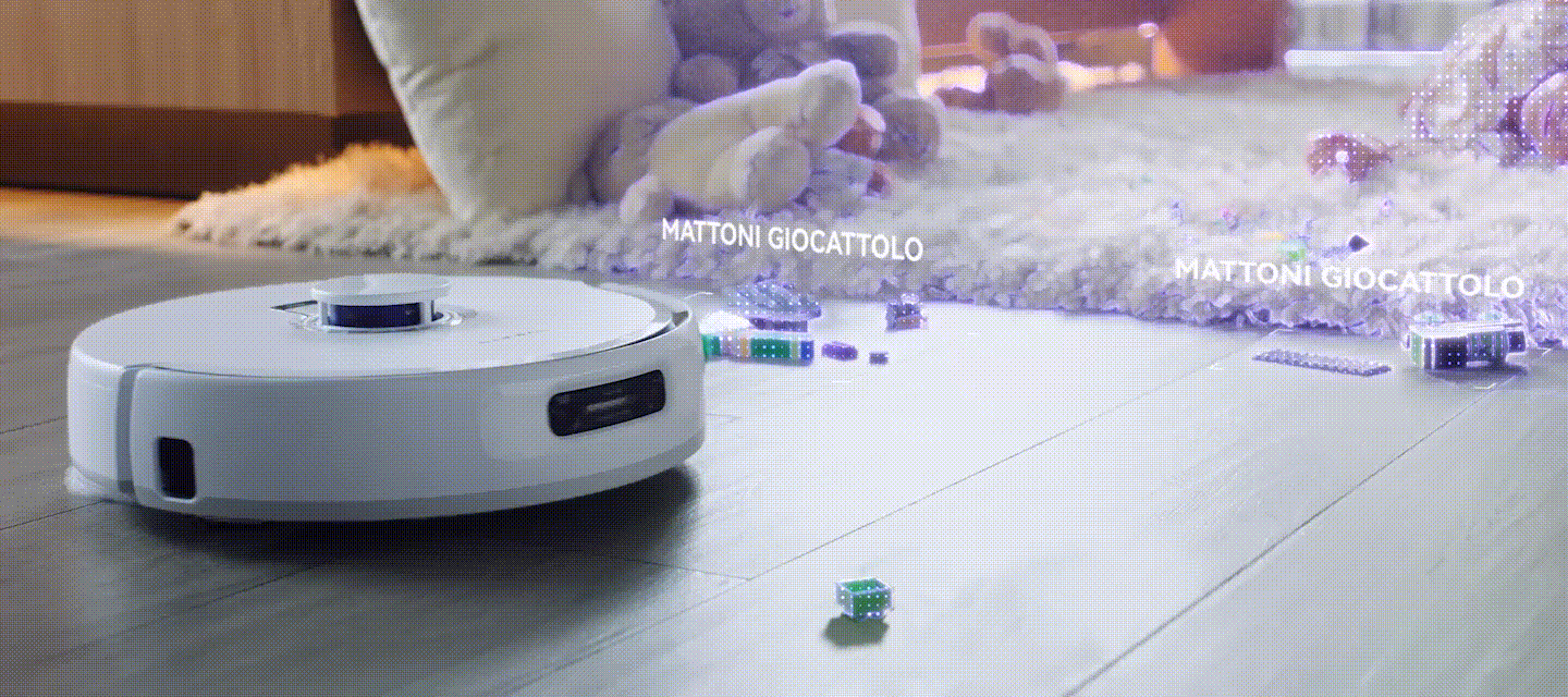 Oltre a rilevare ostacoli, le telecamere frontali sono anche in grado di distinguere diversi tipi di sporco grazie alla tecnologia AI proattiva DirtSense 2.0, che, in tempo reale, decide automaticamente l’azione da intraprendere in base alla dimensione e al tipo di sporco rilevato. Polvere? Attiva l’aspirazione. Detriti solidi? Aumenta la potenza di aspirazione. Liquidi? Attiva i mop e disattiva l’aspirazione.