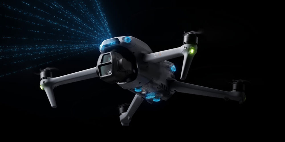 DJI ha dotato l’Air 3S di tecnologie all’avanguardia per migliorare la sicurezza del volo, anche in condizioni di scarsa visibilità. Il sistema di rilevamento degli ostacoli omnidirezionale (sei sensori visivi: due frontali, due posteriori e due inferiori), potenziato da LiDAR frontale e sensori a infrarossi ToF (time-of-flight) verso il basso, permette al drone di identificare ed aggirare automaticamente gli ostacoli anche durante i voli notturni.
