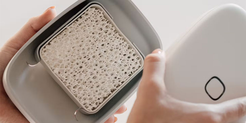 È un filtro ceramico rivestito da un fotocatalizzatore, applicato sotto forma di nano-rivestimento per massimizzarne l’efficacia, attivato da 12 LED a luce visibile. Tra le sue caratteristiche c’è la possibilità di lavarlo senza necessità di sostituirlo, riducendo così i costi di gestione a lungo termine e minimizzando l’impatto ambientale.