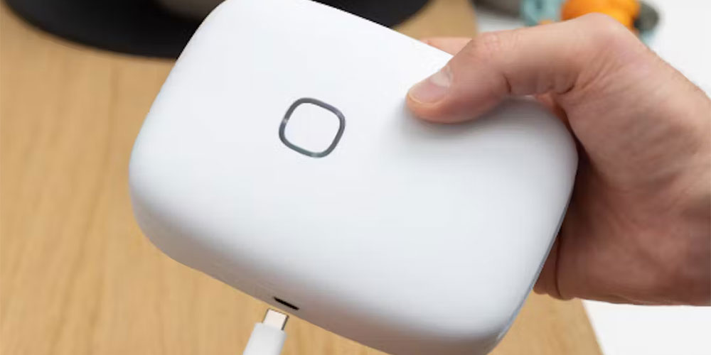 La ricarica della batteria (10.400 mAh) avviene collegando il cavo USB-A/USB-C in dotazione alla porta USB-C nella sezione superiore.