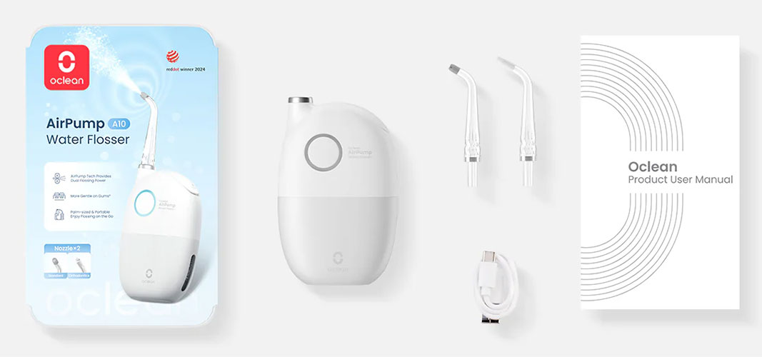 Sostituto delle opzioni tradizionali di filo interdentale, come i bastoncini monouso, l’AirPump A10 di Oclean è un innovativo idropulsore dentale progettato per rivoluzionare l’igiene orale quotidiana. Un dispositivo compatto che punta a unire praticità, efficacia e rispetto per l’ambiente. Grazie alla tecnologia proprietaria AirPump, combina aria compressa e getti d’acqua per una pulizia profonda ma allo stesso tempo delicata.
