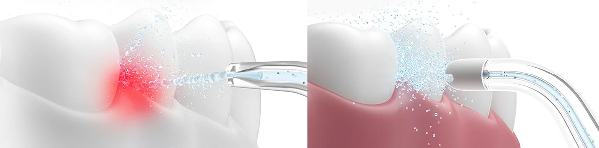 Questo a riduce il disagio spesso creato dai tradizionali idropulsori ad alta pressione, offrendo una pulizia efficace ma rispettosa delle gengive.