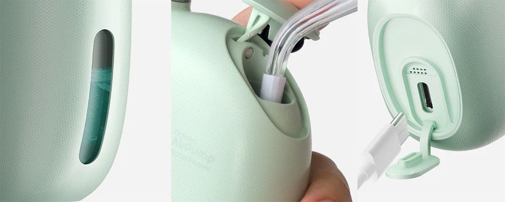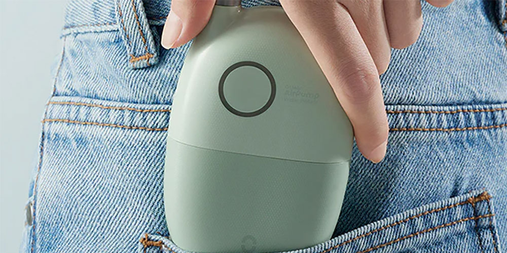 Disponibile nelle colorazioni bianca o verde, l’AirPump A10 ha una forma cilindrica allungata ed ergonomica, progettata per adattarsi comodamente alla mano durante l’uso.