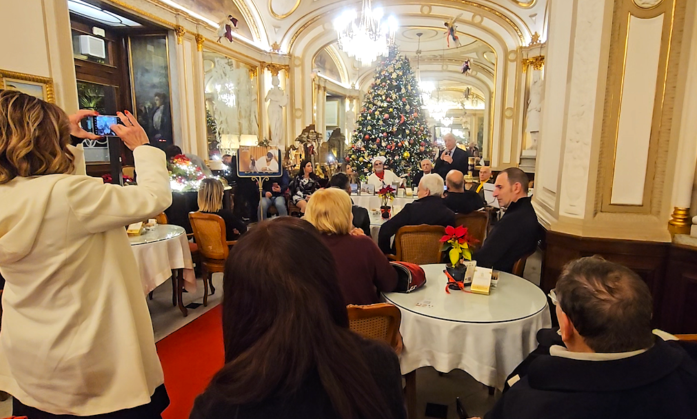 Napoli. Presentato al Gran Caffè Gambrinus, in una magica atmosfera di festa prenatalizia e di solidarietà, il calendario 2025 di Pulcinella realizzato grazie agli scatti di Vincenzo Burrone.