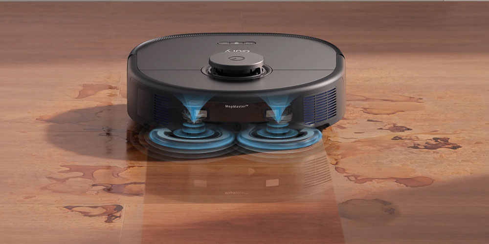 Per quanto riguarda il lavaggio, il sistema MopMaster 2.0 si avvale di due mop rotanti che esercitano una pressione verso il basso di 1 kg e ruotano a 180 giri al minuto, garantendo elevate prestazioni su pavimenti in ceramica e parquet.