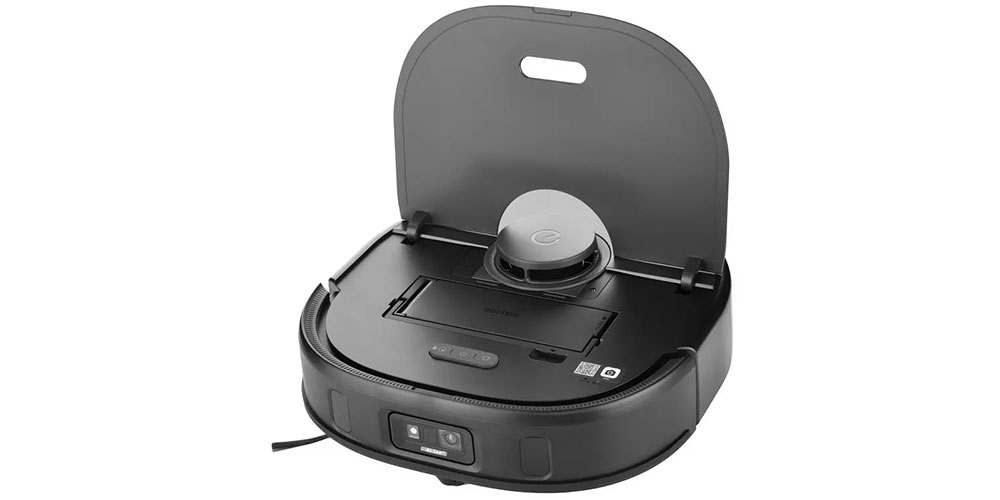 Il contenitore della polvere, posizionato sotto un coperchio con chiusura magnetica, è facilmente accessibile e può essere estratto per eliminare eventuali detriti incastrati e per accedere al filtro, che necessita di una pulizia periodica. La gestione dell’acqua avviene in modo completamente automatico quando il robot è nella stazione base, eliminando la necessità di avere un serbatoio rimovibile. I moci, invece, sono rimovibili per una pulizia più approfondita o per sostituirli quando si usurano con il tempo.