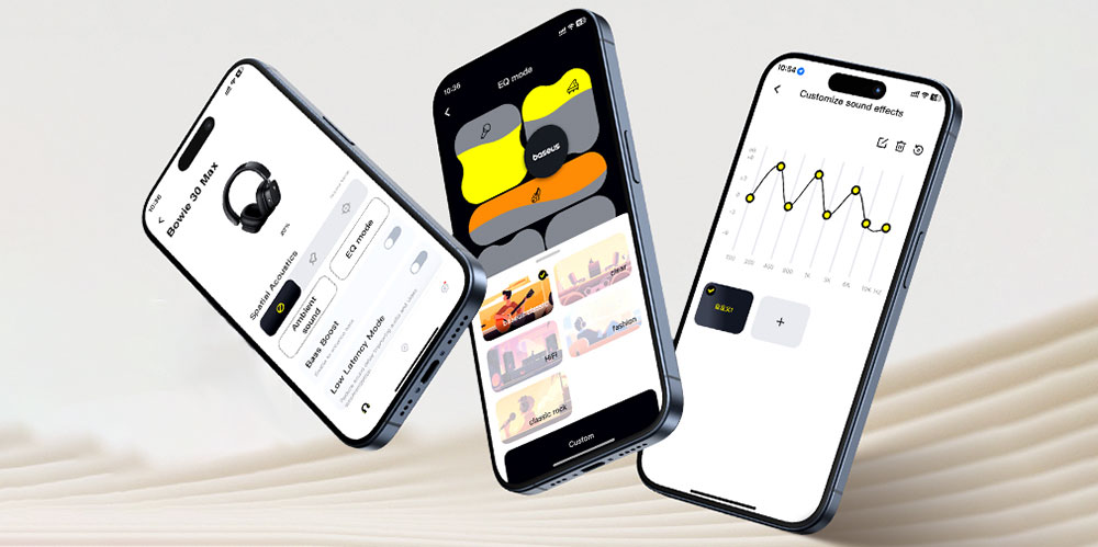 Le cuffie offrono una serie di funzionalità smart, gestibili tramite l’app Baseus, disponibile sia per Android che per iOS. L’interfaccia dell’app è intuitiva e facile da usare, semplificando l’accesso a tutte le impostazioni principali. L’app consente di attivare o disattivare le modalità ANC e trasparenza, personalizzare l’audio per adattare il suono alle proprie preferenze grazie a preset come “Baseus Classico” e “Hi-Fi Live”, o utilizzando un equalizzatore manuale. Permette, inoltre, di monitorare il livello della batteria e di effettuare eventuali aggiornamenti firmware.