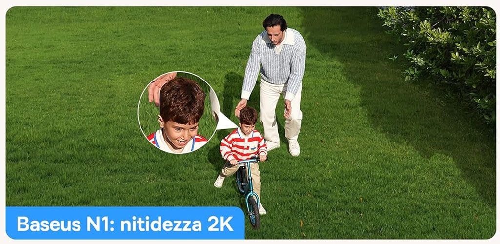 L’N1 Outdoor di Baseus è un kit che include due telecamere ad alta risoluzione pensate per il posizionamento all’esterno. Con una qualità video 2K, visione notturna a colori, resistenza alle intemperie e archiviazione locale gratuita, il sistema si propone come una soluzione completa e accessibile per chi desidera monitorare efficacemente l’esterno della propria abitazione.
