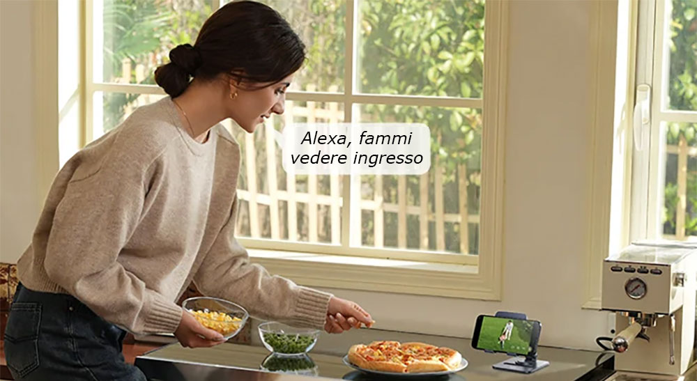 Il sistema è compatibile con Amazon Alexa e Google Assistant, permettendo di controllare le telecamere con comandi vocali e di visualizzare lo streaming su dispositivi come Echo Show.