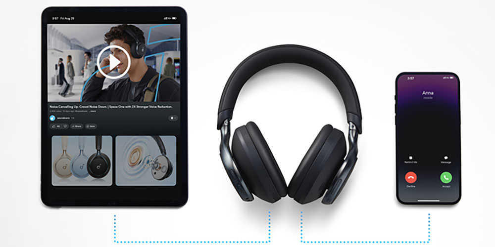 Le Space One sono dotate di Bluetooth 5.3 e supportano la connessione multipoint, che consente di collegarle a due dispositivi contemporaneamente (ad esempio, uno smartphone e un PC). Il supporto a Google Fast Pair rende l’abbinamento con dispositivi Android veloce e intuitivo.