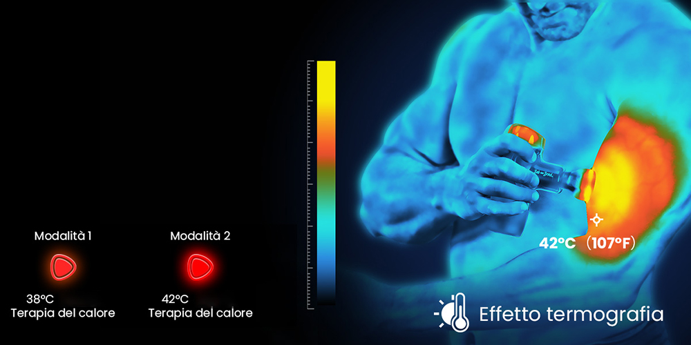 L’elemento distintivo della M7 Plus è però la presenza della terapia termica a infrarossi. In parole semplici, tra le cinque testine in dotazione ce n’è una dotata di resistenza e LED a infrarossi, in grado di riscaldarsi su due livelli di temperatura (38°C o 42°C). Attivando questa testina, al massaggio si aggiunge un piacevole effetto calore sulla zona trattata. Il calore, come noto in fisioterapia, aiuta a dilatare i vasi sanguigni e a rilassare ulteriormente i muscoli, migliorando così l’efficacia del massaggio e accelerando il recupero.