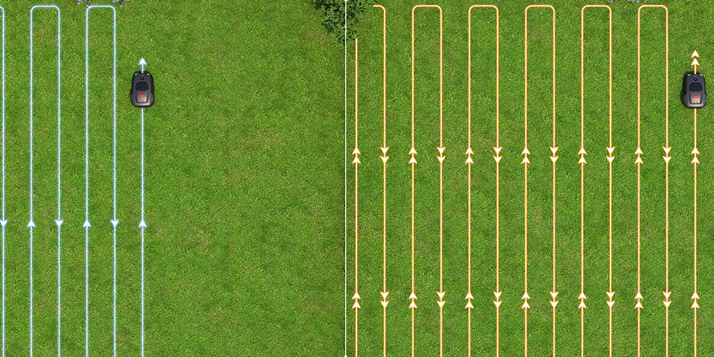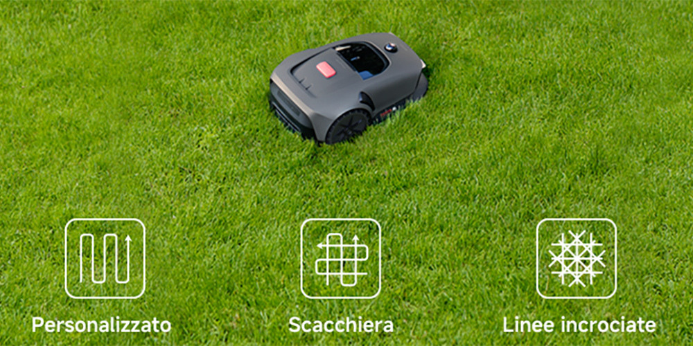 È inoltre possibile regolare la direzione e la tipologia di taglio (personalizzato, a scacchiera, incrociato, perimetrale o a spot) per ottenere il risultato estetico desiderato e promuovere una crescita più sana dell’erba, così come abilitare o disabilitare il taglio specifico dei bordi.