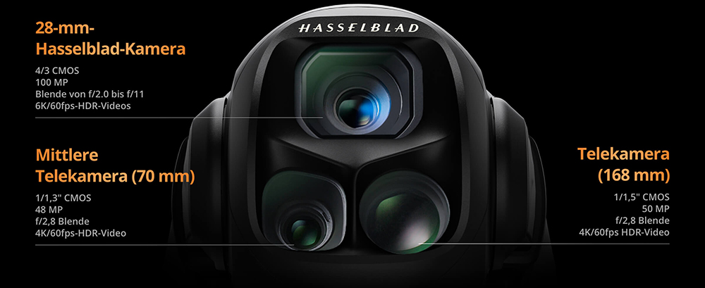 La presenza di tre fotocamere, una principale Hasselblad e due teleobiettivi, apre scenari creativi del tutto inediti.