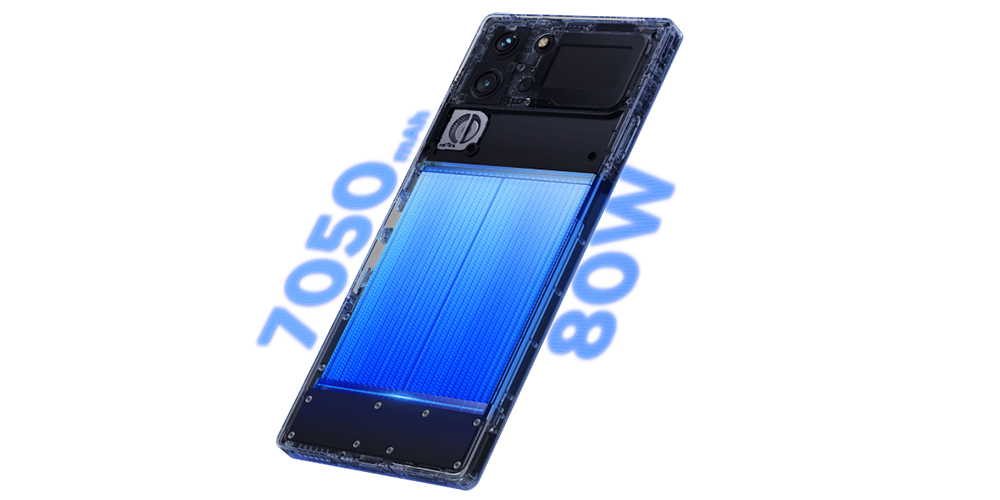 La back-cover in Gorilla Glass semi-trasparente (nelle varianti Dusk e Moonlight) lascia intravedere dettagli ispirati alla circuiteria interna, illuminati da LED RGB dinamici e personalizzabili.