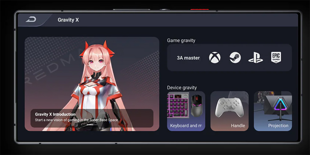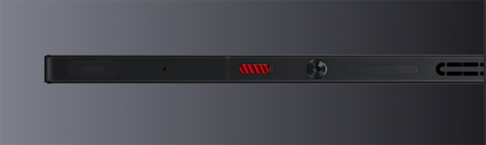 uno slider rosso per l’accesso rapido all’area gaming, il carrellino dual nanoSIM e una porta USB-C con uscita video.