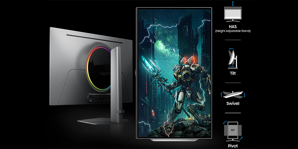 Per eliminare tearing e stuttering fondamentali la compatibilità con NVIDIA G-SYNC e il supporto a AMD FreeSync Premium Pro. Samsung ha lavorato anche sull’esperienza d’uso durante le lunghe sessioni.