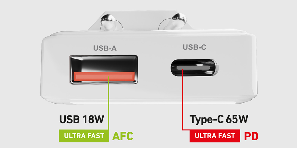 Non solo per portabilità il Flexi si distingue anche per potenza e versatilità grazie alla sua doppia uscita. La porta USB-C Power Delivery supporta la ricarica ultra-rapida fino a 65W, ideale per notebook, MacBook (inclusi i modelli Pro da 13 e 14 pollici), ultrabook Windows, iPad Pro e smartphone di ultima generazione. È in grado di alimentare dispositivi che fino a poco tempo fa richiedevano caricabatteria ingombranti, garantendo efficienza ottimizzata e protezione delle batterie. Accanto, la porta USB-A con tecnologia Adaptive Fast Charge eroga 18W, assicurando una ricarica rapida per l’intero ecosistema smartphone, da iPhone (con cavo o adattatore compatibile) ai modelli Samsung, Xiaomi e Oppo, oltre a e-reader e powerbank.
