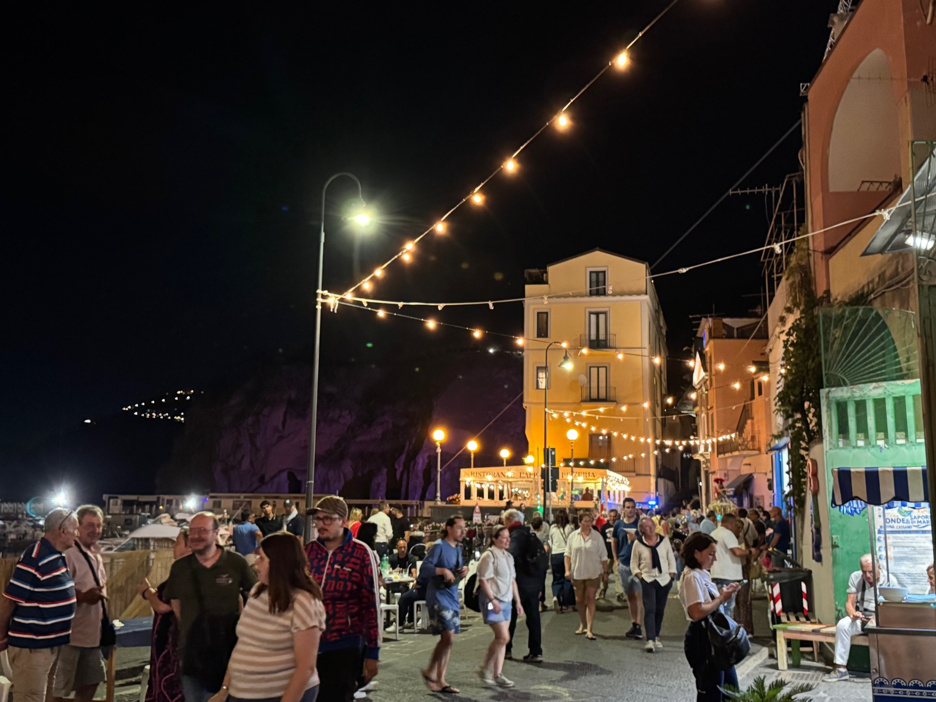 La serata si è svolta al meglio con diverse iniziative. Innanzitutto ha conquistato apprezzamenti e boom di avventori il percorso degustativo “Sapore di mare” con un viaggio nelle ricette pensate per valorizzare il pescato e con protagoniste le attività del borgo. Nel dettaglio ecco le specialità a cura dei ristoranti di Marina di Cassano: Bagni Tina ha proposto un aperitivo al sapore di mare e finger food, Bagni Rosita ha preparato pasta fagioli e cozze, Acqua Pazza ha servito il “cuoppo” di mare, Fracatell invece Cous cous con gamberetti, calamari e cozze, Maruzzella con la tradizionale graffa e ‘O Tabbaccar ha presentato il cuzzitiello con genovese di polpo (in alternativa insalata di polpo), poi caramelle, ‘o pere e ‘o musso e granita per rendere la serata ancora più un momento di sapori e festa.Grande spazio e molta partecipazione per il settore culturale e di valorizzazione del pescato grazie al supporto dell’Area Marina Protetta di Punta Campanella che ha incontrato i pescatori del borgo in collaborazione con LifeSea.net, a ciò si sono aggiunti il Museo del Mare dell’I.T.N. Nino Bixio, i libri sulla Marineria a cura della Libreria Mondadori con reti e cianciole a cura di Ade Pesca. E ancora: macramè a cura di Francesca Esposito, mostra di modellini di barca radiocomandate a cura di Amici Modellisti Campani. E poi il divertimento con Artisti di strada e lo Spettacolo itinerante della Compagnia degli Sbuffi “Sea Parade”.