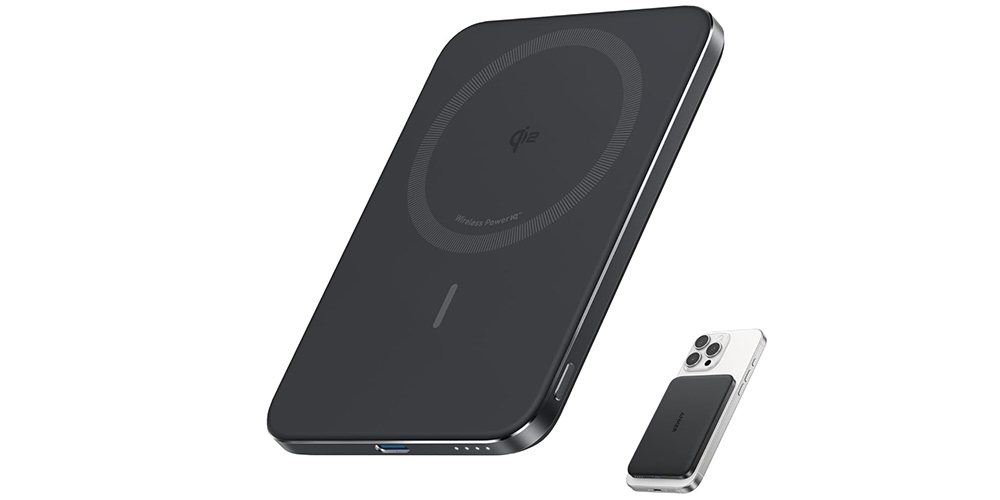 La sua forma compatta (10,2 × 7,06 cm) – poco più grande di una carta di credito – lo rende perfetto da tenere in tasca o nella borsa. Si aggancia magneticamente alla faccia posteriore dell’iPhone (compatibile con MagSafe) e inizia subito a ricaricare, senza bisogno di cavi o pulsanti.