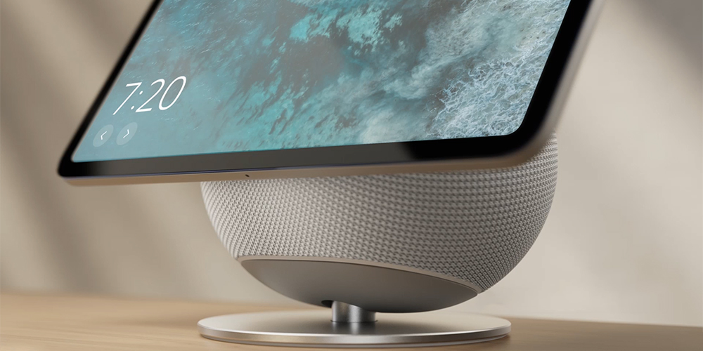 Il cambiamento estetico dell’Echo Show 11 non passa inosservato. Rispetto alle generazioni precedenti, ha un profilo più sottile e uno schermo che sembra quasi “galleggiare” sopra una base sferica rivestita in tessuto 3D, disponibile nelle colorazioni bianco ghiaccio o grafite, che ospita l’altoparlante. Questo nuovo approccio stilistico conferisce al dispositivo un aspetto più elegante, quasi da complemento d’arredo contemporaneo.