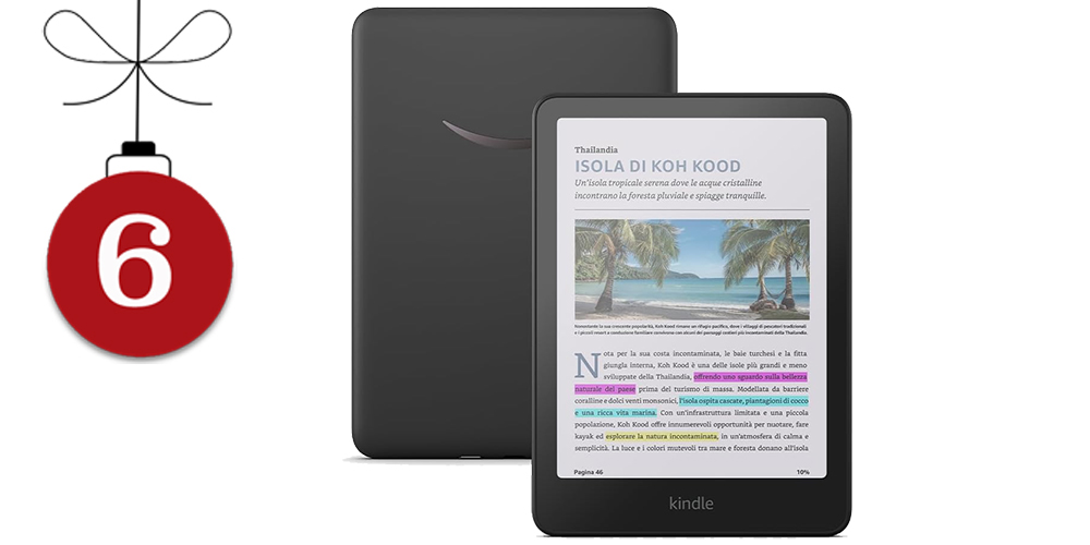 Per perdersi tra le pagine – KINDLE COLORSOFT di AMAZON: e-reader pensato per chi cerca un’esperienza di lettura completa e versatile. Il display a colori consente di visualizzare immagini, illustrazioni e fotografie dei libri in modo più fedele, mentre la regolazione della luce calda permette di adattare lo schermo a ogni condizione di illuminazione. La navigazione è fluida, con cambio pagina rapido, possibilità di evidenziare testi, prendere appunti e gestire facilmente la propria libreria digitale. Con 16 GB di memoria interna, offre spazio per migliaia di titoli ed è una soluzione pratica per leggere ovunque, senza rinunciare alla qualità visiva.