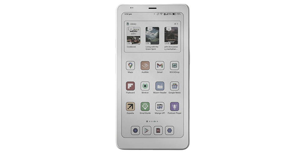 Il doppio slot ibrido offre ulteriore flessibilità, permettendo di scegliere tra doppia SIM o l’utilizzo di una SIM affiancata a una scheda di memoria SD. È una soluzione che riflette l’attenzione di BOOX per un pubblico mobile, che vive la tecnologia come strumento di lavoro, di studio e di informazione continua, ma senza l’assillo delle notifiche costanti.
