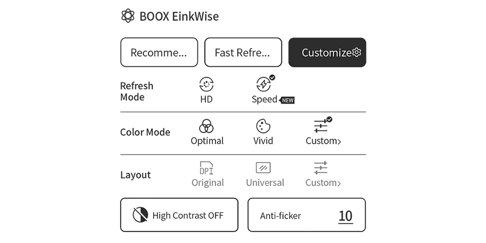 La funzione EinkWise regola invece automaticamente frequenza di aggiornamento e resa cromatica in base al tipo di attività, garantendo un’esperienza sempre fluida.