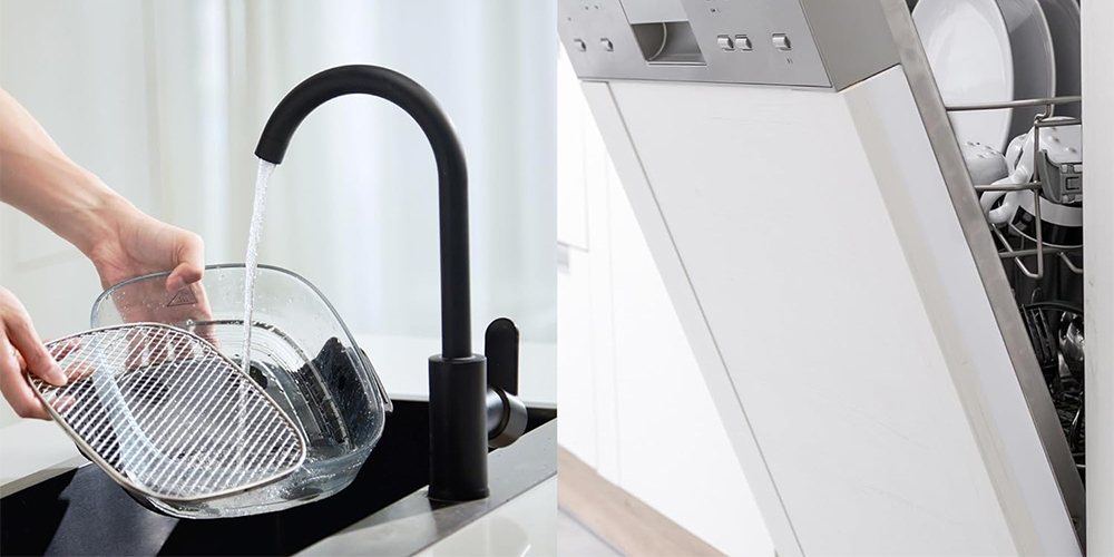 Il vantaggio dell’uso del vetro emerge anche al momento della pulizia. I contenitori e il vassoio interno in acciaio inox 304 possono essere lavati tranquillamente in lavastoviglie, senza il rischio di danneggiare rivestimenti antiaderenti. Anche a mano, il vetro si pulisce facilmente e non trattiene odori o residui di cottura.