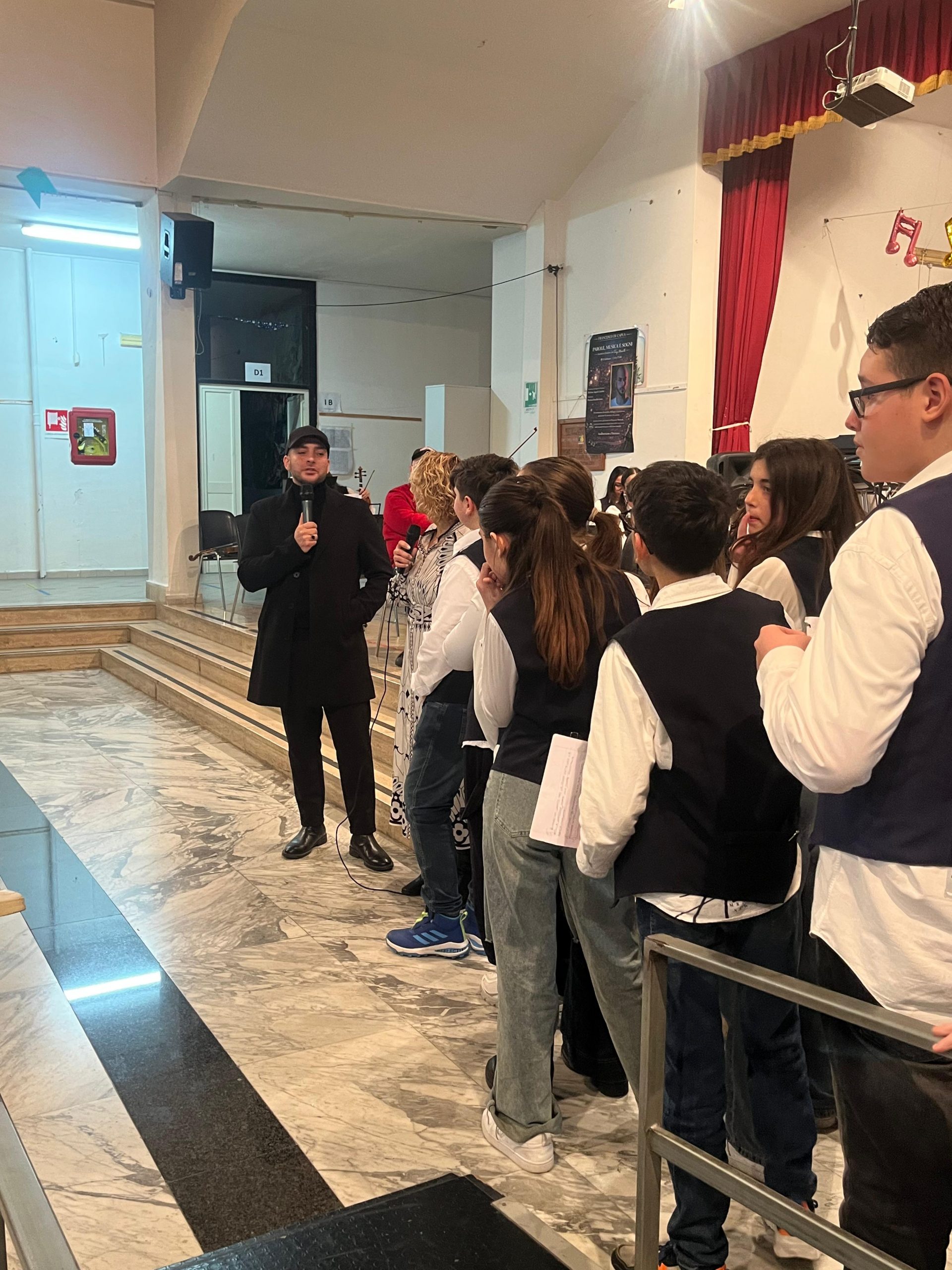 L’incontro, organizzato dalla professoressa Silvana Cascone, ha visto gli alunni esibirsi nei brani “Believer” e “Napulè”, in un clima di partecipazione autentica, condiviso anche con i genitori della scuola primaria. La musica è diventata linguaggio comune, esercizio di ascolto, respiro collettivo. La professoressa Elisabetta Ferrara, docente di pianoforte, ha espresso con emozione il senso profondo dell’iniziativa: «Per noi è importante che i nostri alunni possano avere un punto di riferimento per crescere. Dei fari a cui ispirarsi. In particolare attraverso lo strumento musicale, per i ragazzi che vogliono scoprire il loro talento. Tony è l’esempio di chi si è messo in gioco. È una forma di comunicazione tra chi ce l’ha fatta e chi crede». E ancora: «La musica è il valore aggiunto fondamentale. Oggi è un motivo per credere di essere se stessi. Lavorare con la musica vuol dire lavorare con l’autostima dei ragazzi». Dietro queste parole si percepisce una missione educativa che va oltre la didattica: crescere insieme agli alunni, non stancarsi mai di cercare il talento nascosto, seminare fiducia perché un giorno quei bambini possano diventare ciò che desiderano, forti della convinzione di valere. La dirigente scolastica, dottoressa Angela Cambri, ha richiamato il valore pedagogico della musica fin dall’antica Grecia, ricordando come essa sia parte integrante della formazione dell’individuo. Attraverso la musica si impara a stare in gruppo, a riconoscersi comunità, a rispettare i tempi degli altri.